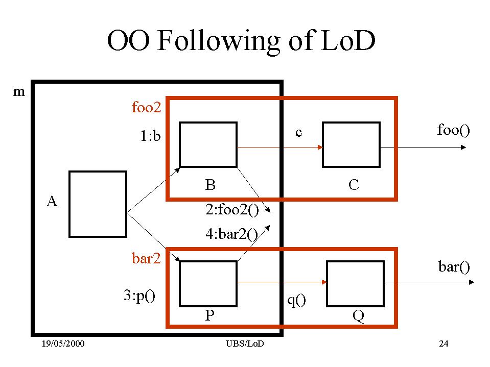 Follow Law of Demeter (class diagram) Two small methods foo2() and bar2() are introduced.