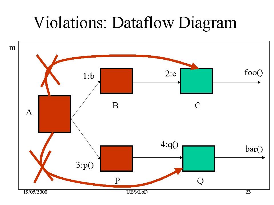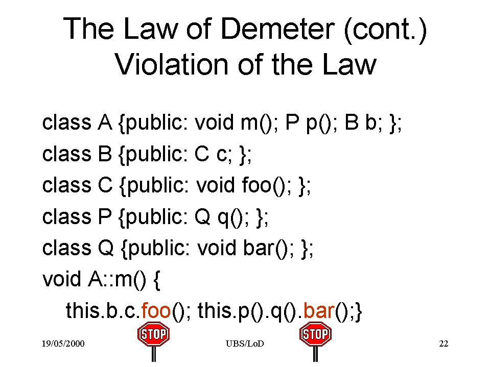 The following pictures use a very simple example to show violations of the Law of Demeter graphically.